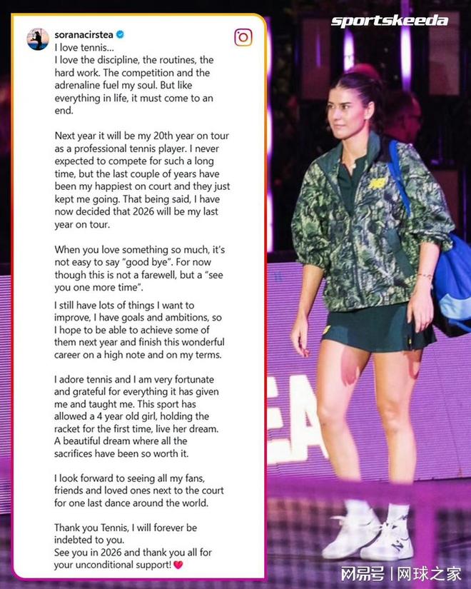 上周,罗马网球明星索拉娜·科斯蒂亚宣布,她将在2026赛季结束后正式挂拍,结束长达两年的职业生涯。宣布决定后,她在她创办的网球业内人士俱乐部与加西亚进行了长时间、富有洞察力的交谈,谈论了她的职业生涯、遗憾和经验教训。 “我从四岁起就把网球当作了一份‘工作’。”当大多数孩子还在沙子里打滚时,科斯蒂亚拿起球拍开始了他的“比赛”。天赋既是一种天赋,也是一种诅咒,它带来早熟的同时也带来同等的压力。 “人们只看到成功的表面,却看不到成功后的损失。”他承认了,声音里带着令人难以接受的颤抖。 “赢得一场重要比赛后,我经常独自坐在更衣室里问自己:‘是这样吗?’空虚的感觉比任何失望都更可怕。 ”如果说职业生涯有一条分界线,对于科斯蒂亚来说,那就是25岁时的重伤。“它改变了一切,”他平静地说道。仿佛在谈论别人的故事一样,“不仅是身体上的,还有精神上的。我意识到我不是一个失败者,这项我为之付出了一切的运动,随时都可能离开我。”正是这次伤病迫使他重新思考网球在他生活中的角色。幸福、平衡和自我认同,这些曾经在成功祭坛上被牺牲的概念,开始成为他职业生涯的救世主。 “痛苦、期望和完美带来的精神负担比任何身体上的疲劳都更加消耗。”科斯蒂亚以令人惊讶的诚实眼神直视镜头。 “我曾经相信,无论在宫廷还是在生活中,只有完美才值得爱。但这种信念最终几乎摧毁了我。”他表示,学会接受失败是他职业生涯中最困难的部分,也是最重要的一课。 “你抱怨的是别人的梦想。”他轻声引用自己曾经说过的话,微微一笑,“我学会了感恩,即使是那些人。2026年是他最后一次按照自己的意愿打球。这个决定的背后是他对自己的真正和解:接受自己不可能成为世界第一,也无法赢得大满贯的事实。“我花了很长时间,”他承认,“但当我最终放下洗衣标准时,我感受到了一种以前从未体验过的自由。我开始真正享受这项运动,享受比赛,享受这项运动的纯粹之美。”当谈到青少年网球和早期成功的传奇时,科斯蒂亚的语气变得严肃起来:“我们如此迅速地推动孩子们走上职业化道路,以至于我们忘记了他们是第一位的,也是最重要的。他向家长和教练发出呼吁:“请保护好孩子的童年,让他们在热爱这项运动的同时学会爱自己。冠军头衔会消失,但健康的自我认同会伴随他们一生。””他评论道,“这是一个发展。我们开始明白,运动员首先是人,然后是冠军。”在这段漫长的对话中,人们看到了一场从未为公众所知的KO。蒂亚:善于思考、聪明、诚实、情感丰富,而且非常慷慨:“我害怕自己脆弱,”她承认:“但现在我明白了,正是这些脆弱的部分让我们快乐,让我们真实,让我们彼此真正联系在一起。”她的职业生涯也许不被大满贯奖杯装饰,但在这段旅程中获得的智慧在追逐梦想、奋斗期望、重组自我的路上,科斯蒂亚的故事将成为很多人的镜子和安慰。采访结束后,科斯蒂亚脸上带着平静的微笑站了起来,但她的接受、成长和自我发现的故事才刚刚开始被那些还在的人听到。追逐农场,或在生活的任何领域奋斗,科斯蒂亚的告别语简单而深刻:“成为你自己的冠军,在那里你可以定义成功。”也许体育乃至人生最重要的成就,不是征服世界,而是与自己和解;不求成为第一,但求成为完整的自己。在荣耀与遗憾之间,科斯蒂亚找到了属于自己的平静,这比任何冠军头衔都更加艰难,也更加闪耀。 (来源:网球之家 作者:MEI)