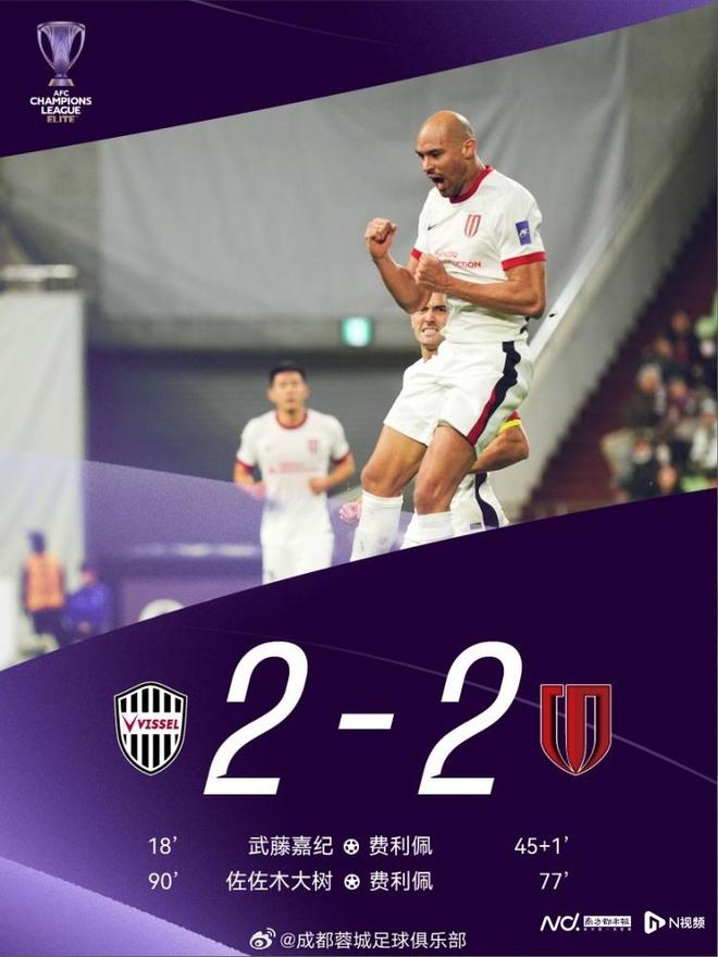 南都讯记者陶欣蕾 2025赛季中超联赛已经结束,但亚冠联赛仍在继续。北京时间12月9日,亚冠联赛精英联赛第六轮进行。成都 成都队客场2-2战平目前排名第一的神户胜利船。中超冠军上海港队在客场与新山队战平。成都成都俱乐部赛后发布的海报。成都容城的比赛将于北京时间18:00举行。首发阵容中,科比队的维塞尔首发外援埃里克;成都 成都派出全部主力球员,莱斯特队防守,费利佩·仁丹、韦世豪、周定阳等天才球员出战。成都这样的阵容安排,体现了成都对于比赛的态度。比赛开始后,成都队苦战,占据了比赛的主动权。但最终还是主队取得了胜利。第18分钟,维斯科比球员在禁区外连续传球后将球传入禁区。武藤芳树低射得手,主队1-0领先。主队取得领先后,掌控了比赛的节奏。但上半场补时第一分钟,费利佩禁区前一脚世界波将比分追平。换边后,韦世豪在第76分钟取得点。费利佩罚球命中,梅开二度。成都 成都客场领先。遗憾的是,在比赛最后阶段,李洋在禁区内犯规,被罚下场,因此被对手判罚点球。佐佐木大树罚球命中,成都成都追平对手。尽管成都成都4轮未尝一胜,目前积6分排名东亚第10位(仍在淘汰中),但这场对阵“领头羊”的比赛从态度到比赛内容都赢得了外界的尊重。嗯。赛后,成都队的周定阳在个人社交媒体上写道:“很遗憾今天我们没能为大家拿回3分,但我们都出去了,向大家展示了成都的精神。”随后,2025赛季中超冠军上海港队挑战马超联赛领头羊新山队。上海黑格因球员伤病和国家队征召等原因,无法以最强阵容出战。上半场,新山共射门20次,其中6次射正。然而,上海港队的门将陈威却屡屡精彩地保住了球门。陈伟的英雄表现也让现场远征军高呼他的名字。易边后陈威继续出色发挥,最终两队握手言和,0-0战平。新山全场比赛射门48次,其中11次射正,但陈威贡献了12次扑救。亚冠联赛6轮过后,上海港 2 平 4 负,未尝胜绩。目前仍积2分排名积分榜下,出线形势受关注。 12月10日,上海申花将客场迎战广岛三箭。